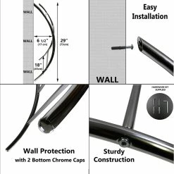 - WALL MOUNTED INSTALLATION: Install 2 screws on your wall or door (hardware supplied), then slide the top vertical bars into them, and it’s done! The screws will be hidden by the bars. Two bottom chrome caps will protect the walls against any damage