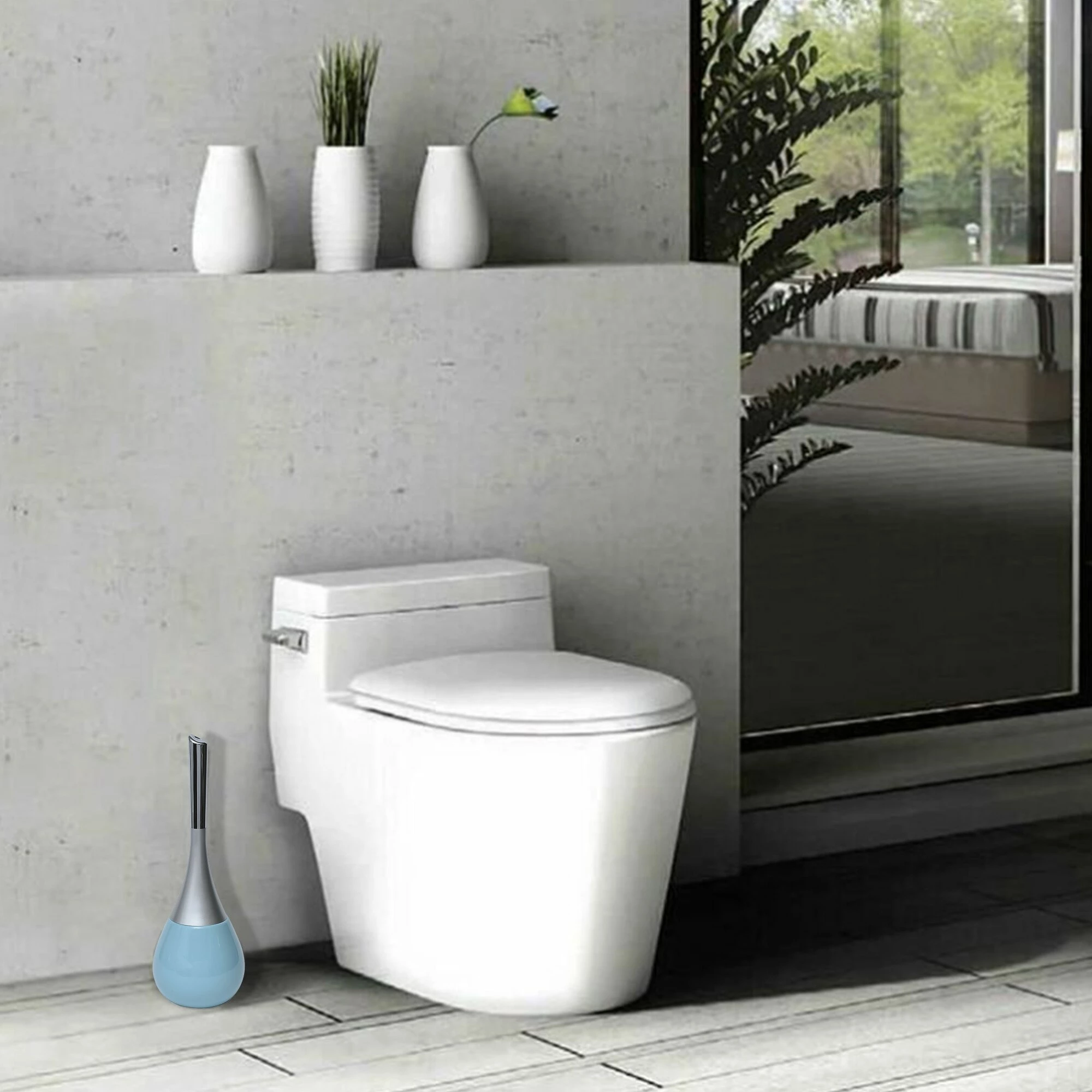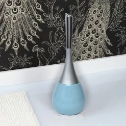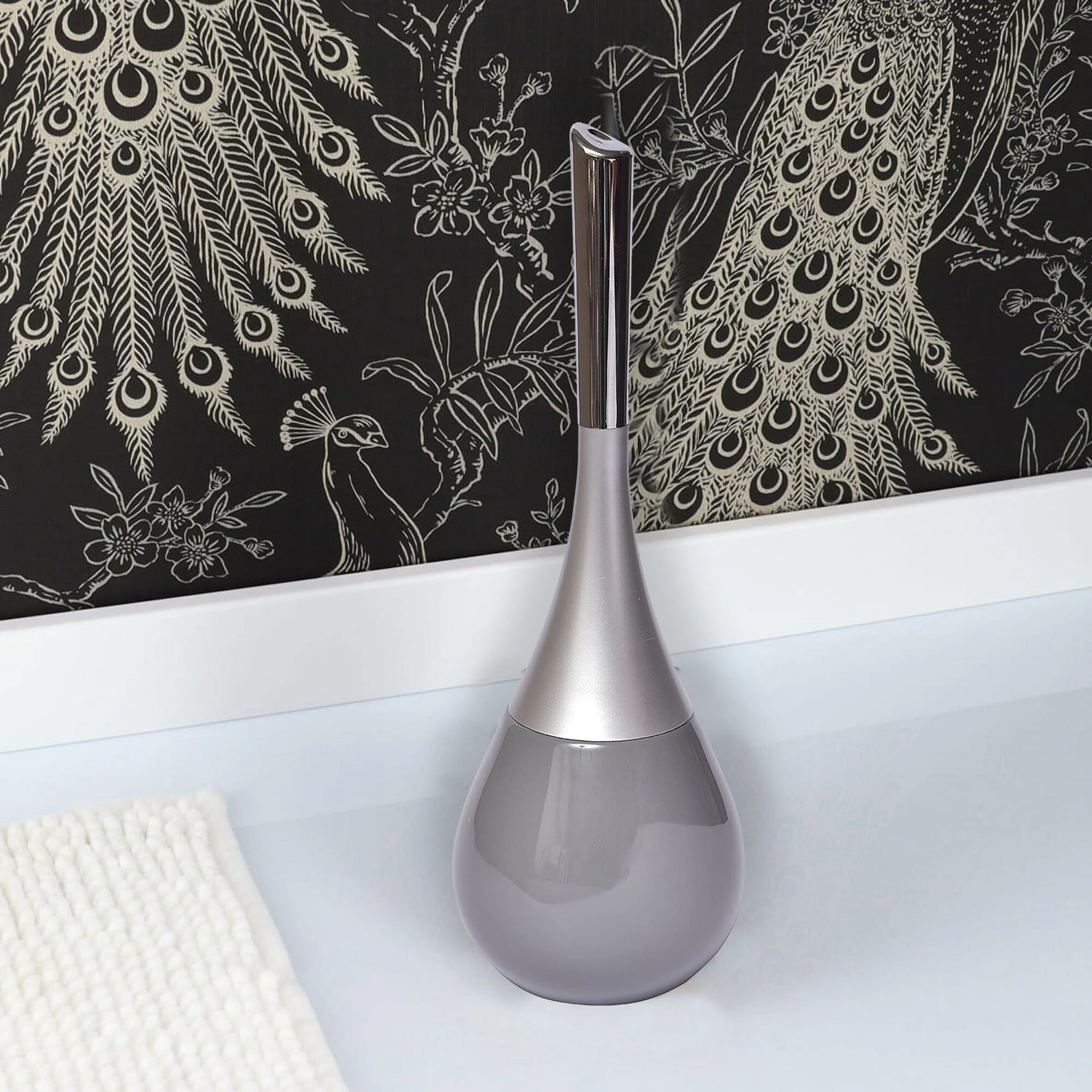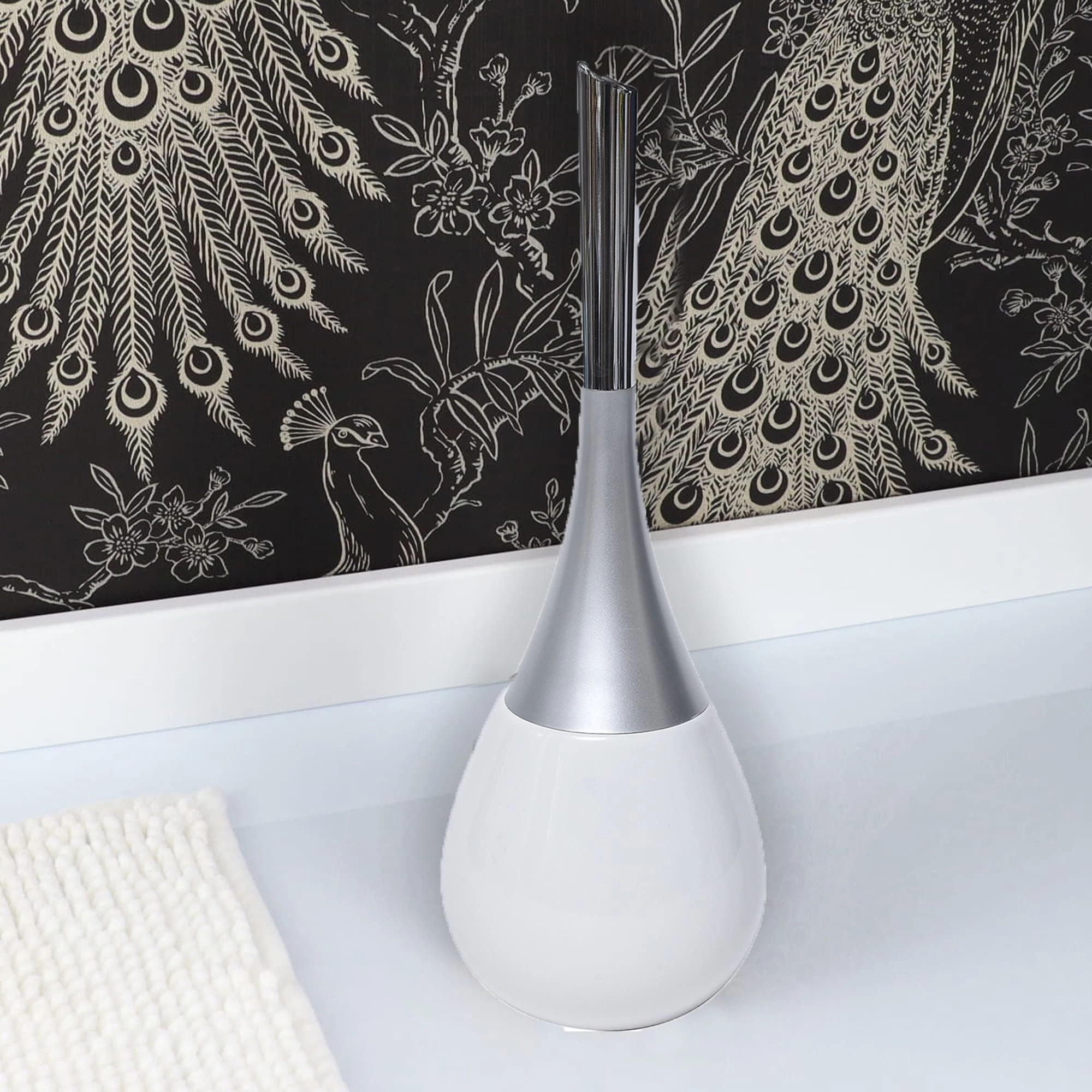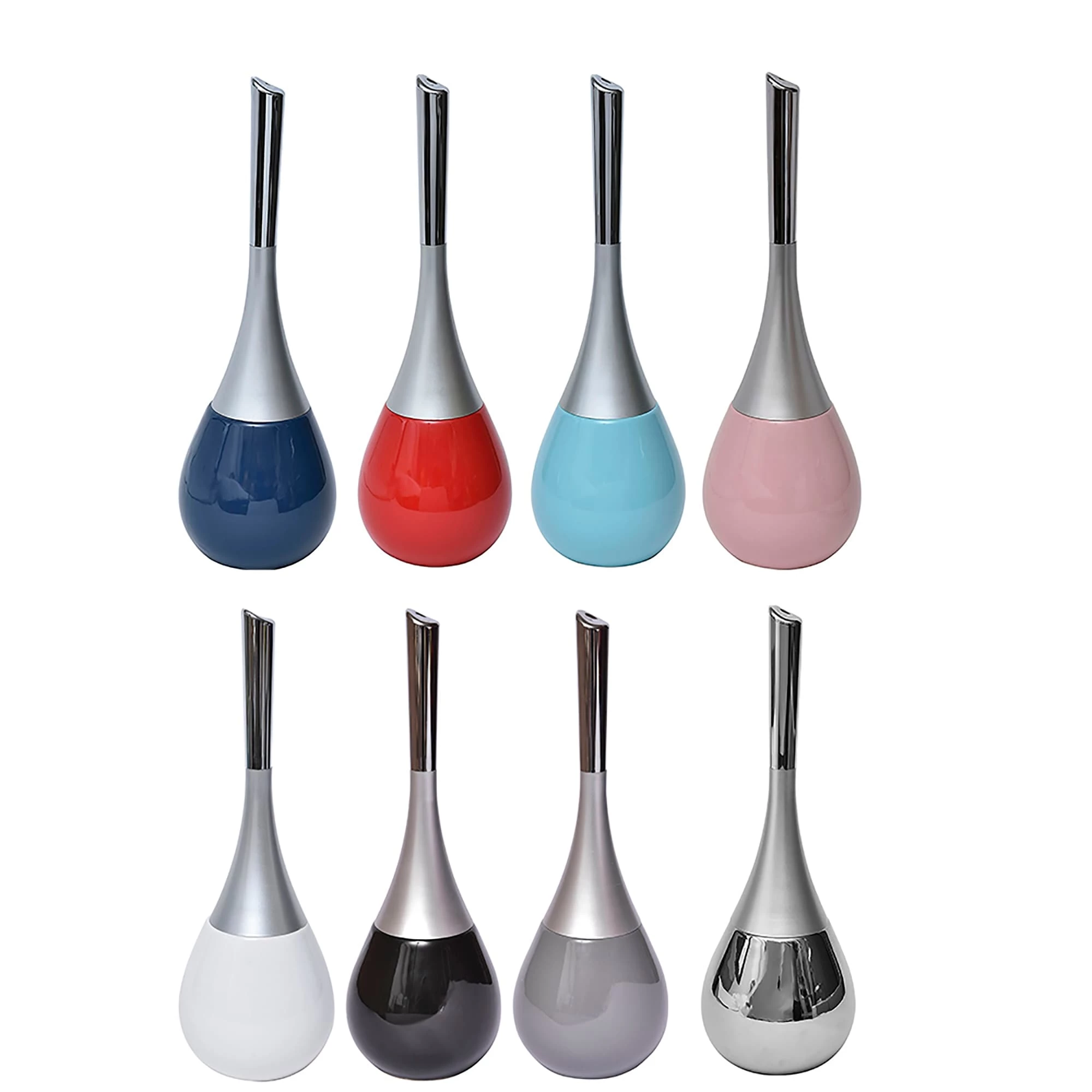 - STYLISH STORAGE: Enjoy this nice lovely toilet bowl brush holder with its water drop shape appearance. This toilet brush with individual holder provides a modern and design storage that keeps floors clean and dry. Made of smooth shiny stoneware with a rounded base, the water drop shape brings a contemporary touch to your bathroom. 8 colors available : white, grey, black, navy blue, red, blue, chrome or pink