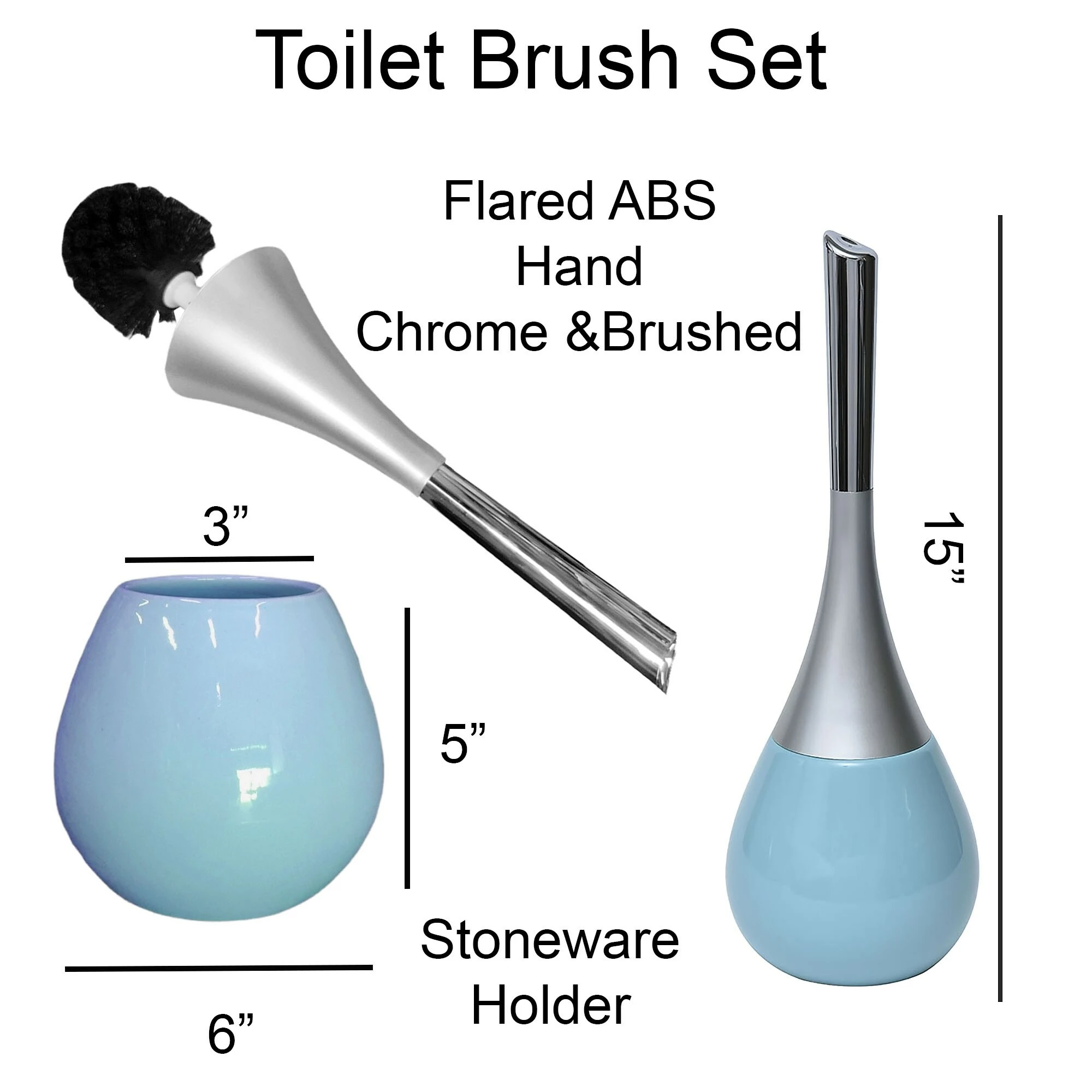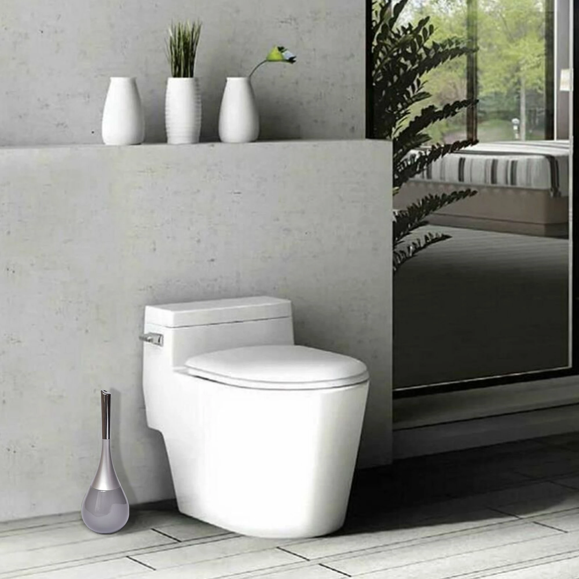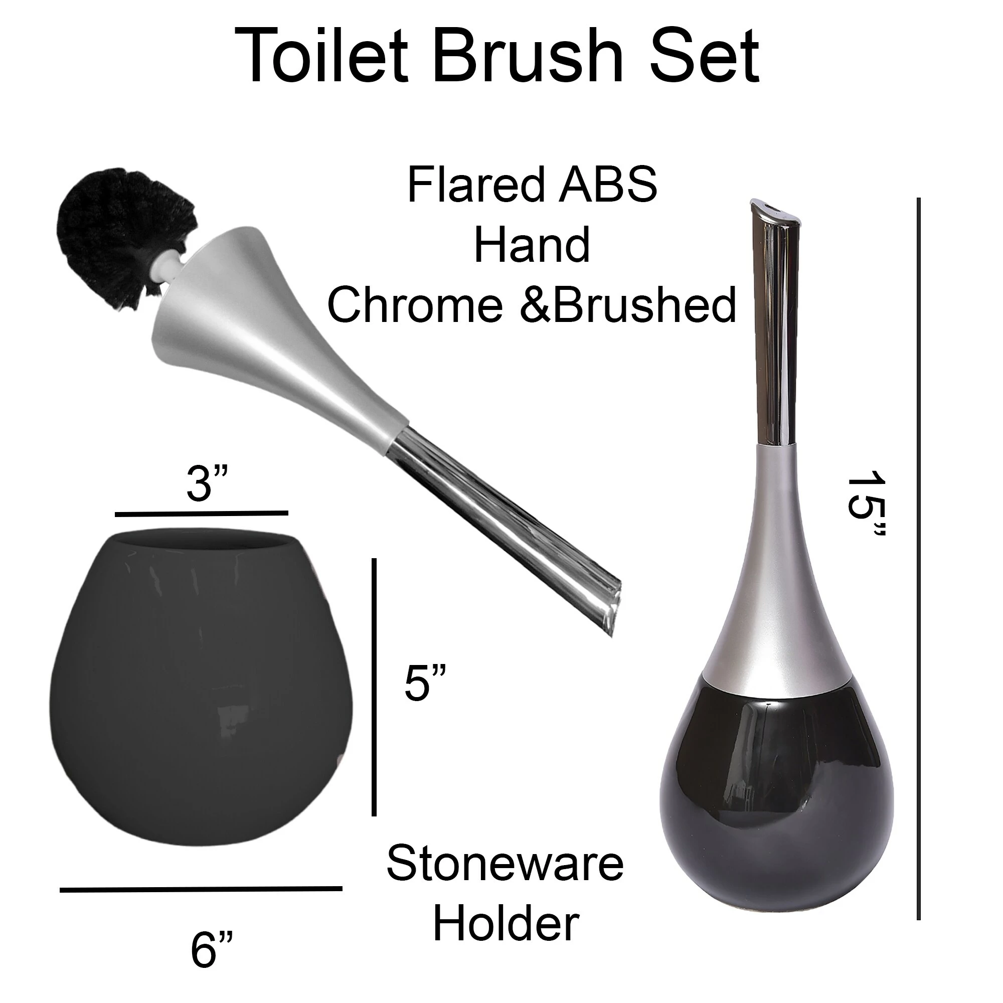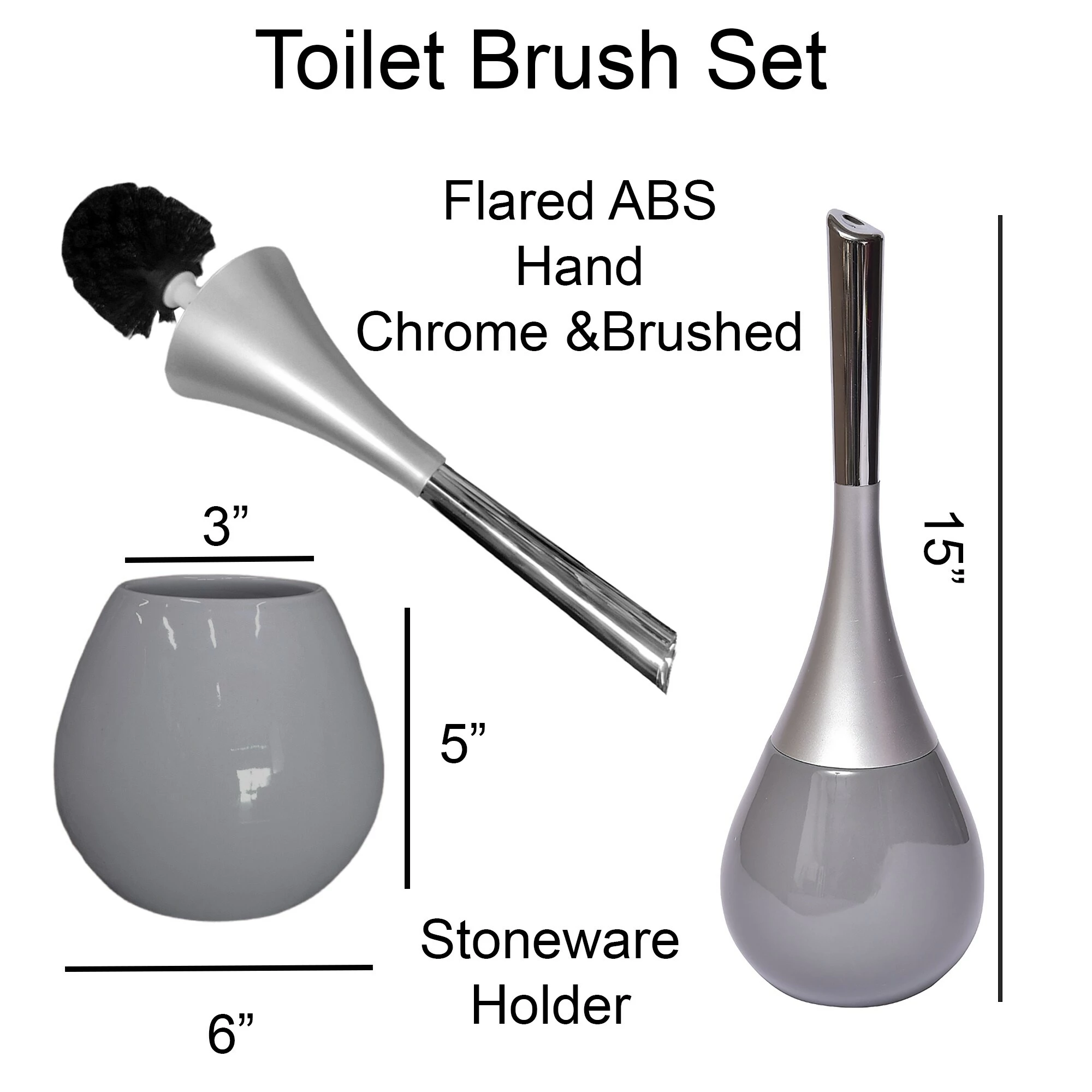 - ERGONOMIC HANDLE : This toilet bowl brush features a sleek flared handle, designed for a secure and comfortable grip. Made of durable plastic, the handle features two colors, a chromed top with a brushed silver bottom, to bring elegance to your toilet dΓ©cor.