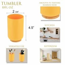 - 7 PIECES COLLECTION: This yellow set Padang features a tumbler, soap dispenser, toothbrush holder, soap dish, toilet bowl brush, tissue box cover and floor trash can
