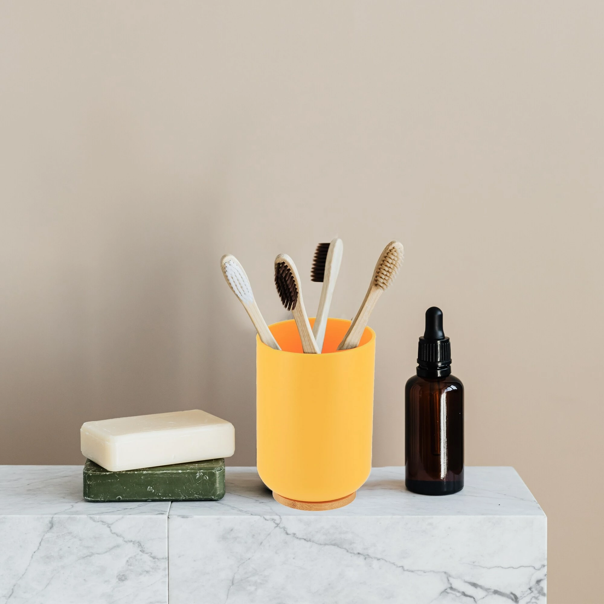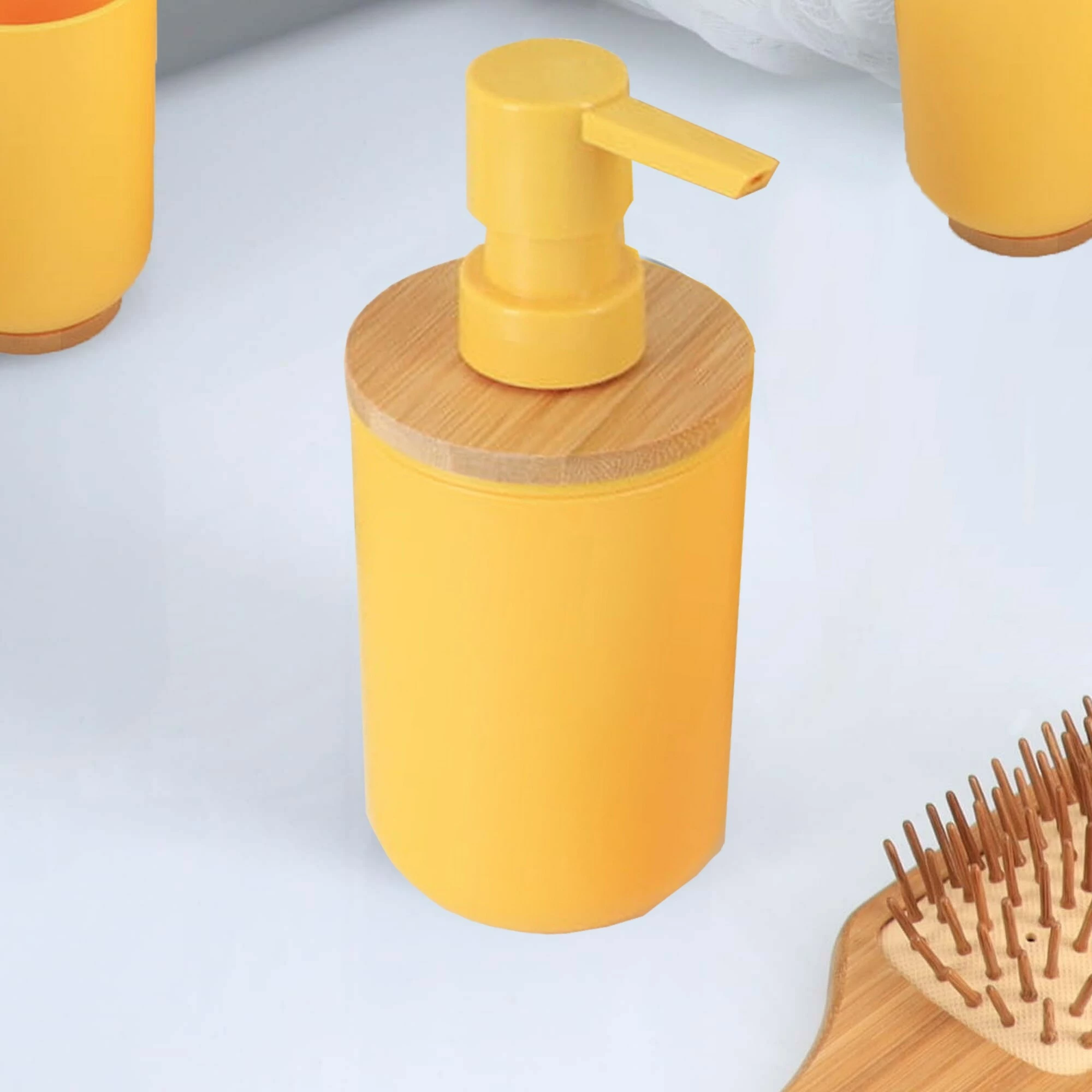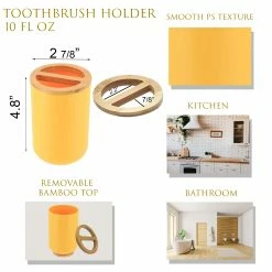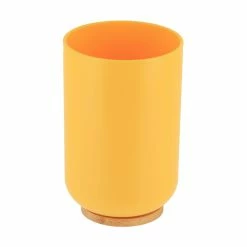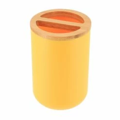 - NATURAL DESIGN: The color combination of yellow and bamboo of this bathroom set PADANG will blow a natural wind to your home décor. This set offers a coordinated and stylish way to conveniently house bathroom necessities